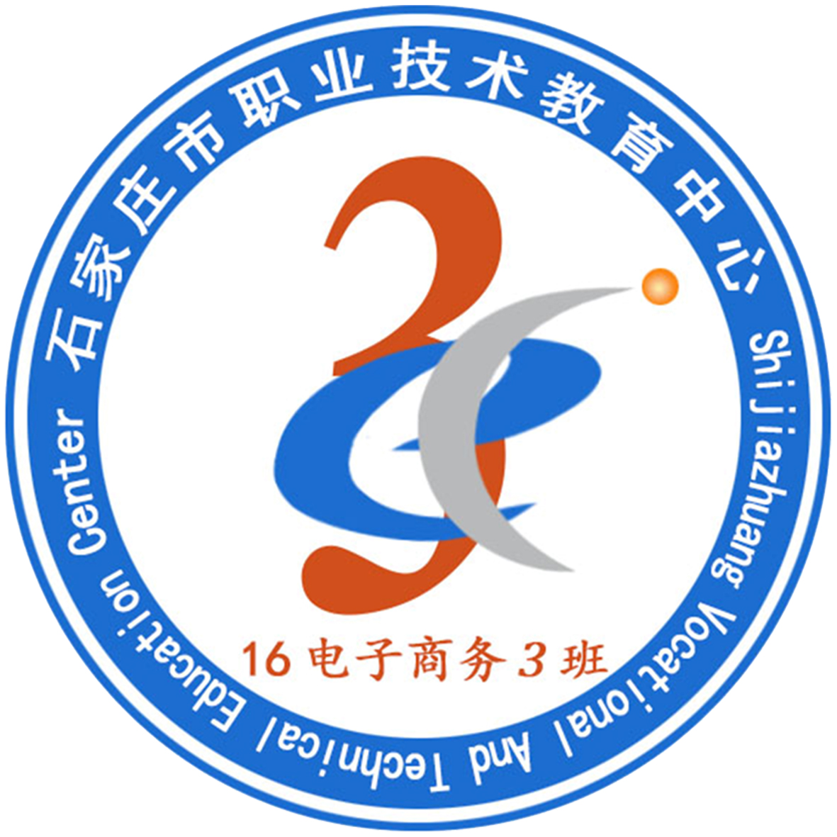 16电商3班的班徽设计说明:“e”和“c”是电子商务英文名Electronic Commere的简称。“3”表示3班。二者合在一起 ,既体现了班级所学的专业,又体现了班名,整个图案简洁明了,美观大方。