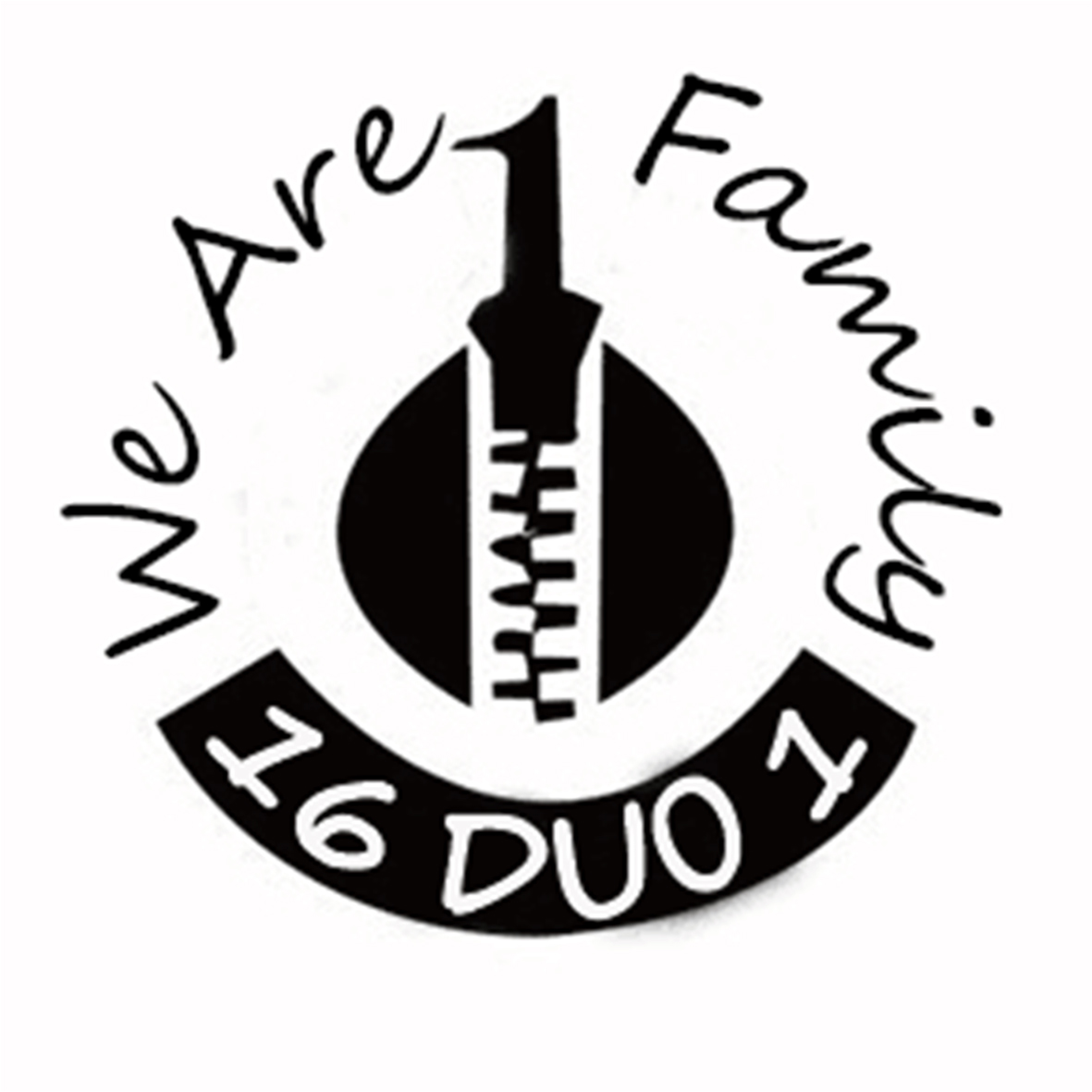 16多媒体1班的班徽设计说明:以黑色为主色调,表达了16多1是形式干练,雷厉风行的班集体,中间logo处,数字“1”意为一枚拉锁,将两边的拉链拉在了一起,象征着1班这个集体使我们紧凑在一起,互帮互助,成为一体。班徽logo上半圆的英文句子“We are family”意为“我们是一家人”更加贴合了“拉锁”的主题,最后黑底白字的“16 DUO 1”更加体现出了班集体的重要性。