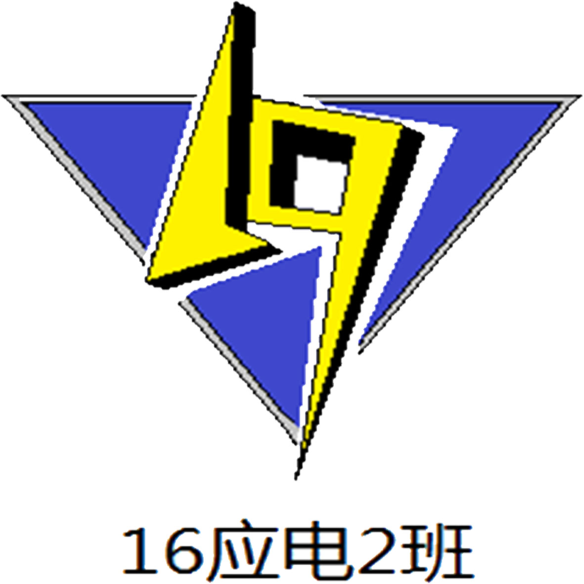 16应用电子2班的班徽设计说明:图绘整体结构为三角形,三角形在几何图形里是最坚固的结构,代表16应该2班团结一致众志成城。中间是一个“电”的模型,体现我们专业的特点。蓝色是蓝领的象征,黄色则是他的互补色,两种颜色交相辉映非常和谐,代表班级同学关系和谐纯洁。