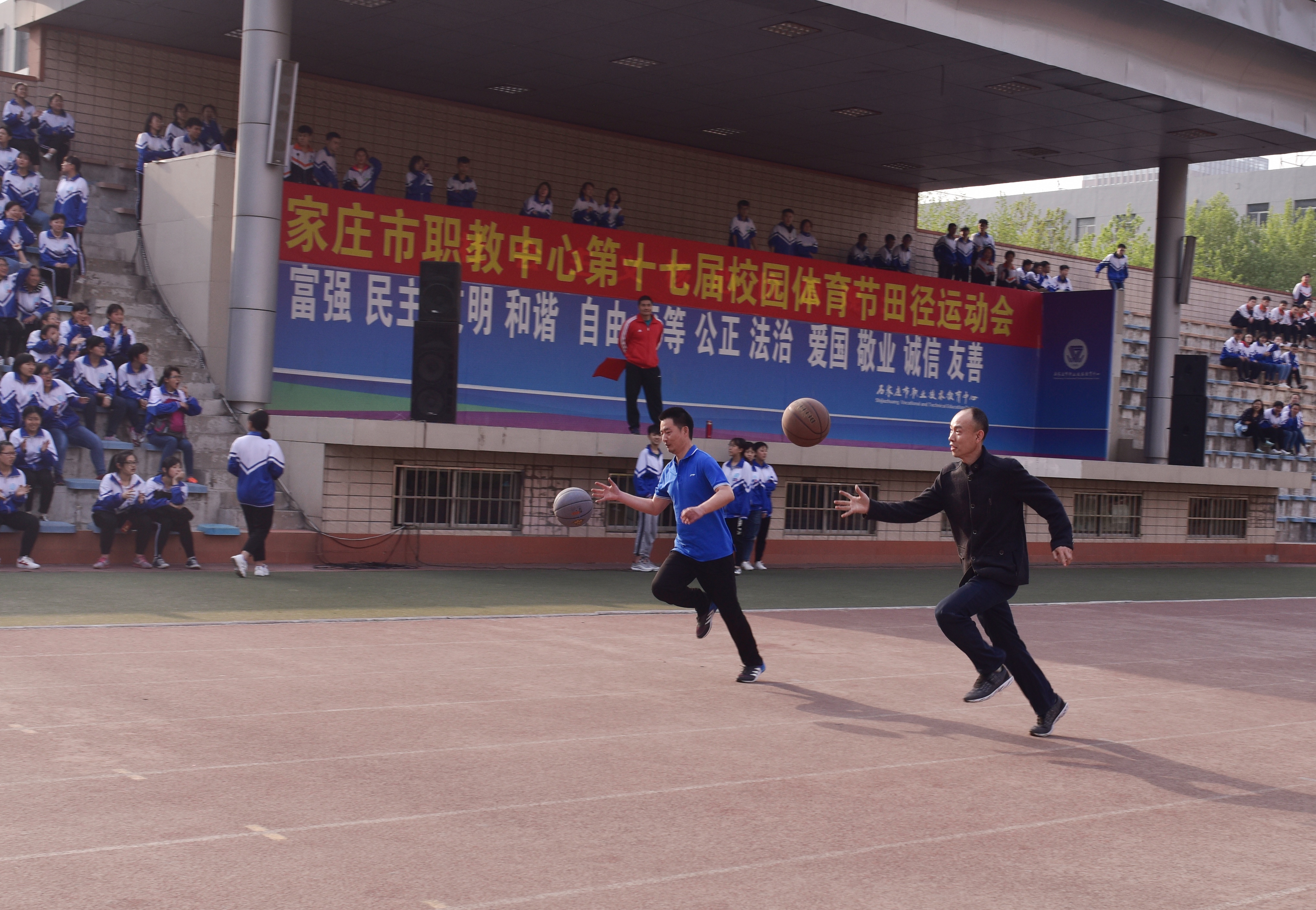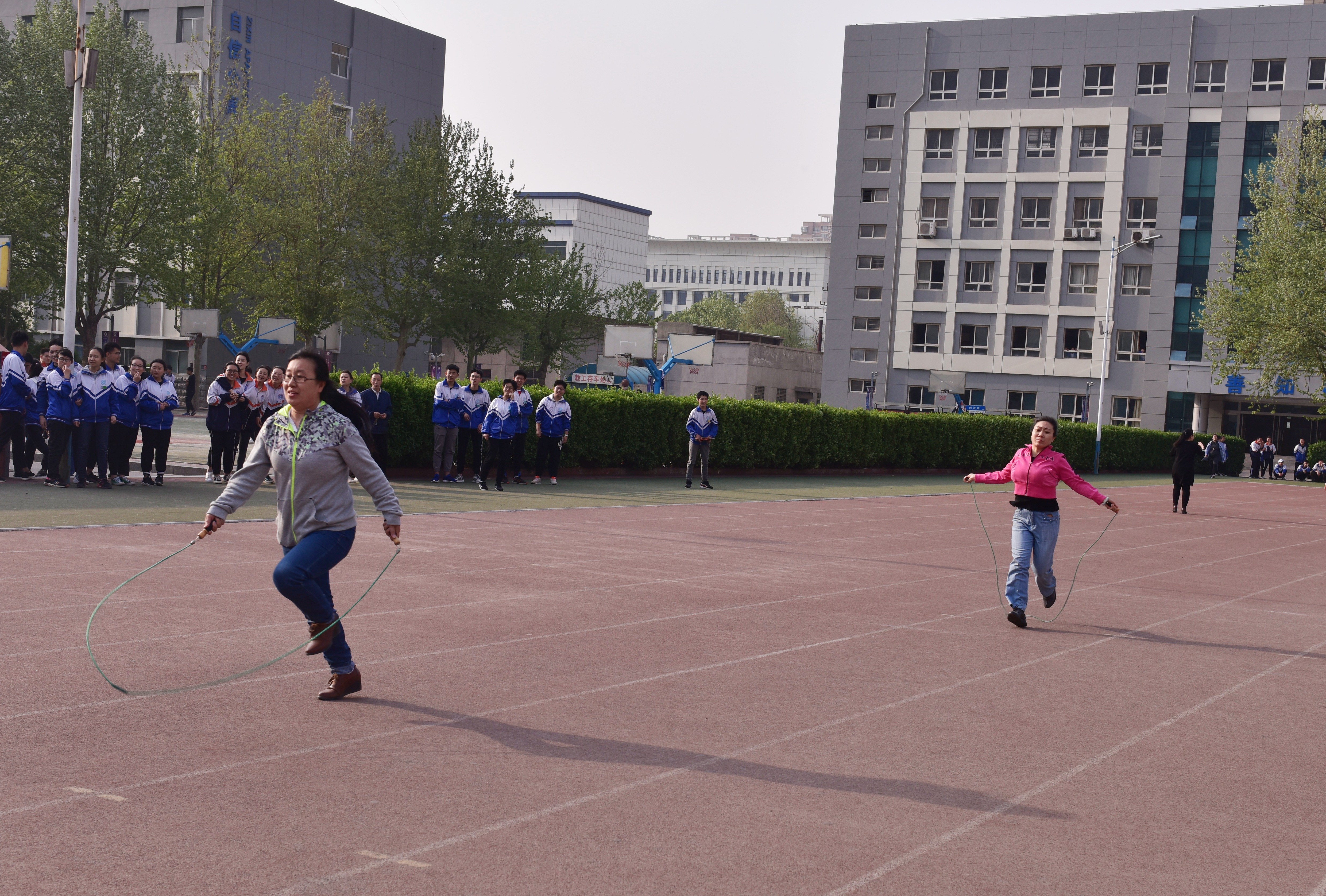 4月17日下午四点,石家庄市职教中心操场上人头攒动,热闹非凡。由学校工会组织的教工春季运动会热闹开锣,全体教工以工会小组为单位组队报名参赛。