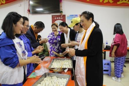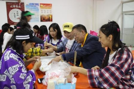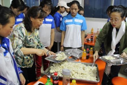王文利校长来了、谭玉平书记来了、苗红玉副校长来了、主任们来了、老师们来了,在歌声中、在欢笑中,一盘盘的饺子包好了、下锅了,饺子里包满了老师们的期望和祝福,学妹们的不舍与依恋。