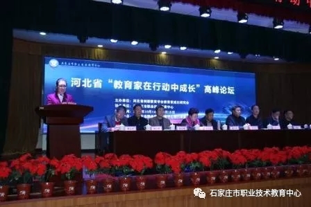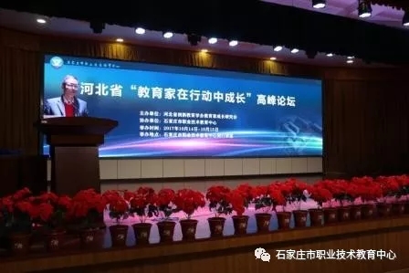 2017年10月 14日上午,河北省“教育家在行动中成长”高峰论坛在石家庄市职教中心隆重开幕。本次活动为期两天,由河北省创新教育学会教育家成长研究会主办,石家庄市职教中心协办。论坛围绕“教育家在行动中成长”这一主题展开,聚焦各层次教育的不同特点,开展教育家在成长过程中办学思想和办学实践等问题的研讨,分享思想智慧和行动策略。近百名会员代表和河北省中小学、幼儿园、中等职业学校中层以上干部与骨干教师参会学习。