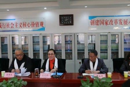 座谈会在学校第一会议室举行。石家庄市职教中心校长王文利代表领导班子,汇报了我校承接教育部内地西藏中职班工作的情况。多年来,石家庄市职教中心在河北省教育厅和石家庄市教育局的正确领导下,把办好内地西藏中职班当作重要政治任务来抓,配备了最好的教学和管理团队,实行“36524”无缝衔接管理,确立“一个核心、两条主线、三个融合”的西藏班德育管理模式,围绕国家安全稳定、民族融合、学生成人成才等方面做了大量工作,取得了可喜成绩。2015年5月,我校西藏班2名学生作为全国内地西藏班学生代表,受到时任国务院副总理刘延东的亲切接见。针对新政策发展,王校长提出了拓展办学层次、开办西藏班“3+2”中高职衔接的设想,以更好地适应西藏经济与社会发展的需要和学生发展的需求。副校长苗红玉和学校西藏事务管理办公室主任赵晓彦针对教育教学中的细节也做了汇报。
