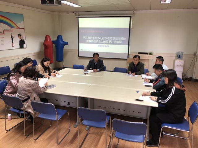 2019年3月20日下午,石家庄市职教中心在阳光心社会议室召开了“学习习近平总书记在学校思想政治理论课教师座谈会上的重要讲话精神”专题座谈会。会议由教学处主任李韶军主持,党委书记谭玉平、教育处主任齐德才、校团委书记李飞、教研室主任刘明丽和全体思政课教师参会。