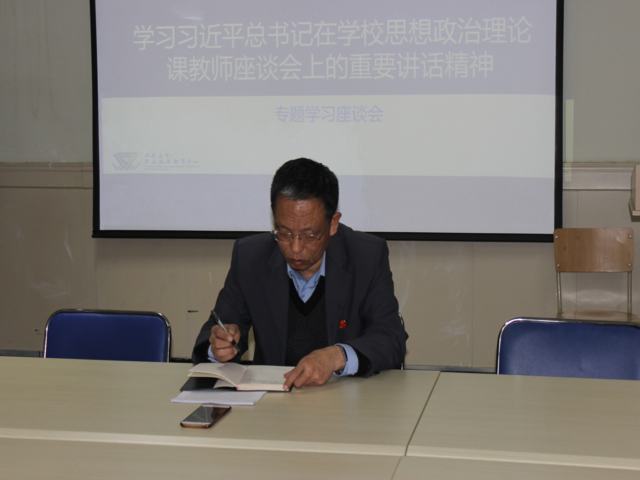 谭玉平书记指出,习近平总书记的讲话强调了“两个关键”和“两个要求”。“两个关键”是指思政课是落实立德树人根本任务的关键课程;办好思想政治理论课的关键在教师。“两个要求”是习总书记提出了对思政课教师的“六要”标准和对思政课的八个坚持“相统一”。谭书记强调,思政课作用不可替代,思政课教师队伍责任重大,希望在座的每一位思政课教师能按照总书记重要讲话的精神来要求自己,并在教学实践中探索“如何办好思想政治课”这一教研课题。