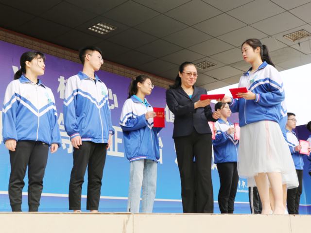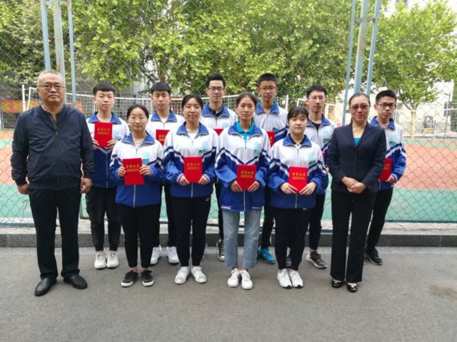在2019年5月5日清晨,迎着和煦的阳光,学校在风雨操场对10名“3+4” 分段培养转段成绩优秀学生进行了表彰。张校长代表学校领导班子向75名学生表示祝贺,并向悉心指导他们的老师们表示最衷心的感谢!王文利校长颁发优秀证书,并与每个学生握手祝贺,最后两位校长与10名学生合影留念。