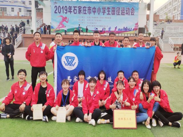 2019年5月8日下午,由石家庄市教育局、体育局主办的市中小学生田径运动会在市石门实验学校运动场圆满落下帷幕。石家庄市职教中心喜获丰收,取得了“丁组团体第三名”和开幕式“最佳方队”奖。