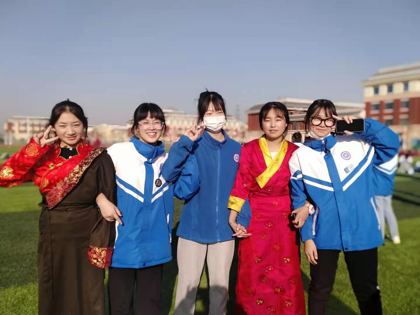 大家期待已久的活动开始了,藏族与汉族的同学们手拉手跳起了锅庄舞,欢快的旋律、快乐的舞步、灿烂的笑容,操场上汇成欢乐的海洋。为进一步加深印象,同学们还各自做了一张写有自己名字的卡片,相互用卡片为对方介绍自己,加深彼此的印象。同时各班还展开了各样有趣的活动,有的班级取数抱团,有的班级团队协作传乒乓球,还有的相互为对方展示着不同民族的歌曲与舞蹈,感受不同民族的文化与特点。一项项活动,拉近了彼此的距离,大家迫不及待的与对方拍照留下珍贵的合影,相互加着好友约定学习上一起努力,同学们都沉浸美好的感情交流中。